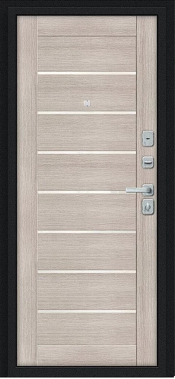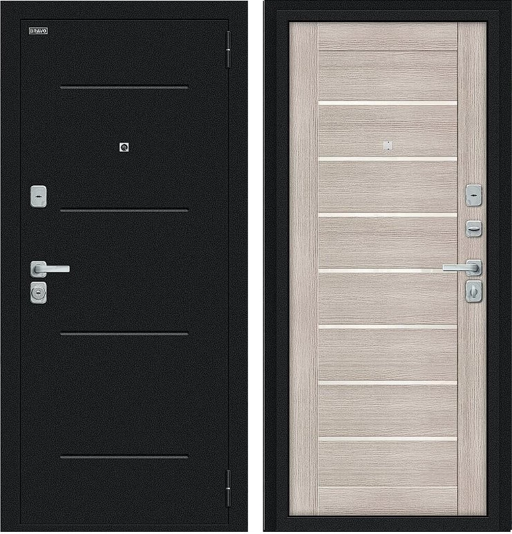 Надежная входная Дверь Браво Техно/BChrome Букле черное/Cappuccino Melinga премиум класса по цене 35 071 руб. Большая толщина стали защитит от проникновения в ваш дом, квартиру или коттедж. Используется очень качественная фурнитура: замки, цилиндры, ручки, защелки. Покрытие и отделка двери изготовлено под внимательным контролем производителя. Дверь имеет долгий срок службы и гарантию.