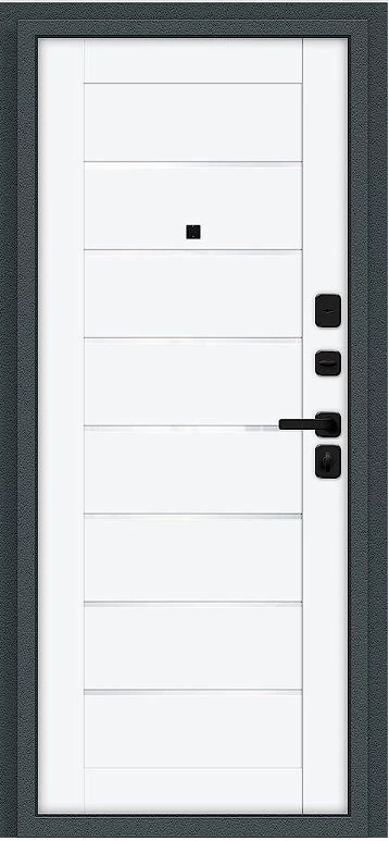 Надежная входная Дверь Браво Техно/SBlack Старк антрацит/White Silk премиум класса по цене 36 221 руб. Большая толщина стали защитит от проникновения в ваш дом, квартиру или коттедж. Используется очень качественная фурнитура: замки, цилиндры, ручки, защелки. Покрытие и отделка двери изготовлено под внимательным контролем производителя. Дверь имеет долгий срок службы и гарантию.